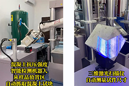 近日,由萬測研發生產的機器人全自動混凝土壓力試驗機在廈門捷航工程檢測技術有限公司正式投入使用。廈門捷航工程檢測技術有限公司是中國交通建設集團三航局下屬國有企業。該實驗室是福建省首個全自動混凝土抗壓“智能無人實驗室”。